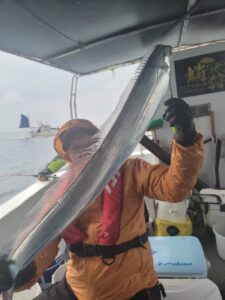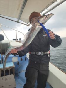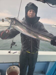 今日もタチ釣り朝から少し形の良いのが釣れました船中30匹お疲れ様でした。