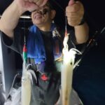2024年8月25日 / 最終更新日 : 2024年8月25日 kawanishi 釣果情報 8月25日の釣果。アカイカ釣り。 今日はイカ釣りで出船しました、20時位から釣れはじめ大、中、小、良く釣れてましたら、1時位から雨、風、雷とひどくて、2時に止め 3桁は5名でした。 お疲れ様でした。