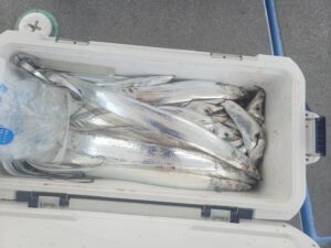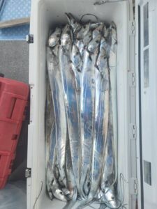 今日は太刀魚3名様で出船しました、朝からはなかなか釣れず、ポイント変え帰るまで入れ食いしました船中190匹お疲れ様でした。